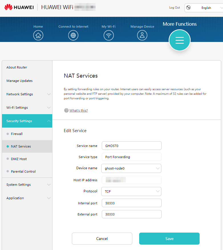 Allow port 30333 on GHOST Node:
