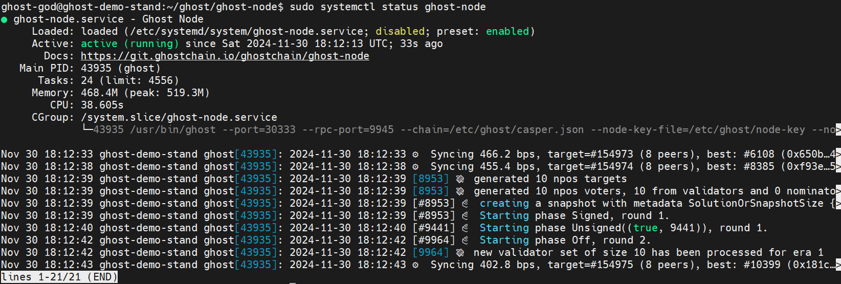 If your GHOST Node is not behind a NAT your terminal window should look something like this: