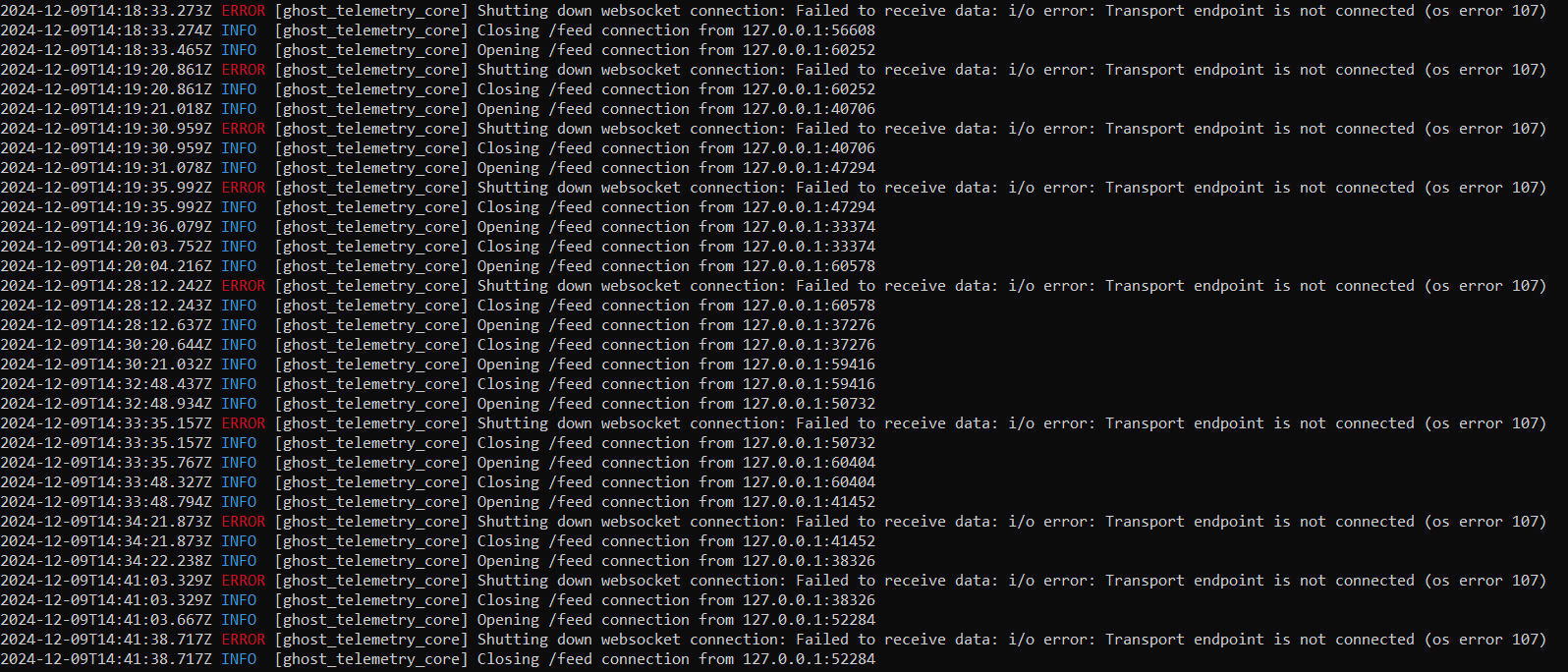 As a side note, during the execution telemetry-core for some reason throws the error periodically: